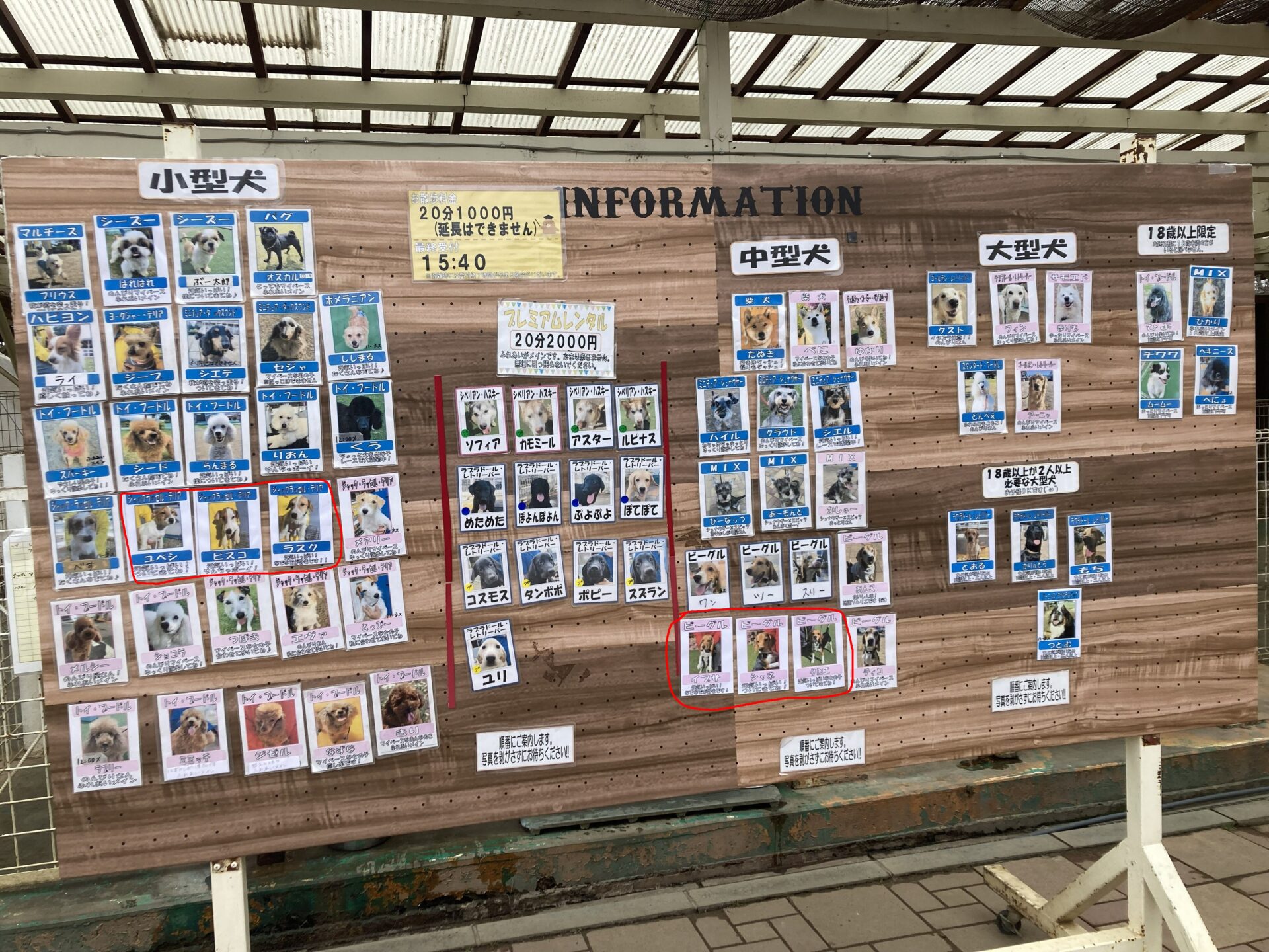 | レンタル | レンタルエリアに居る犬。 居るだけでレンタル不可の犬もいます。 |