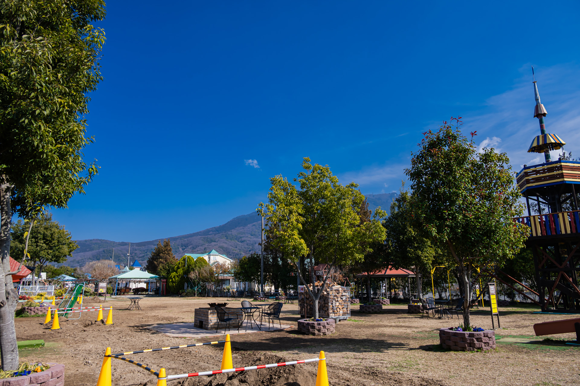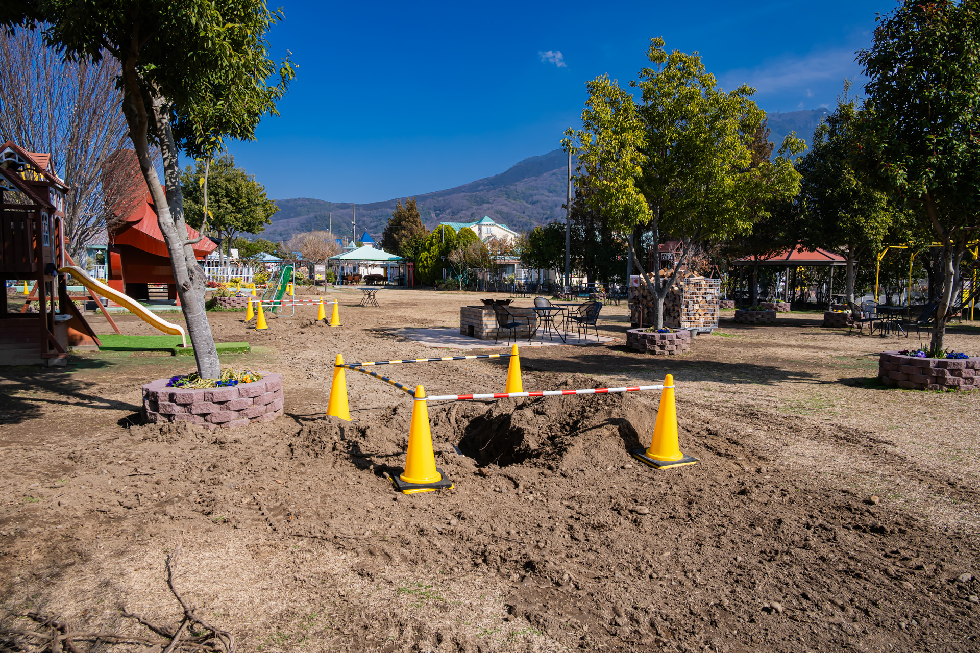 だっくん広場の各所にボコボコ穴があいているのですが、これは配水網の整備をしているそうです。